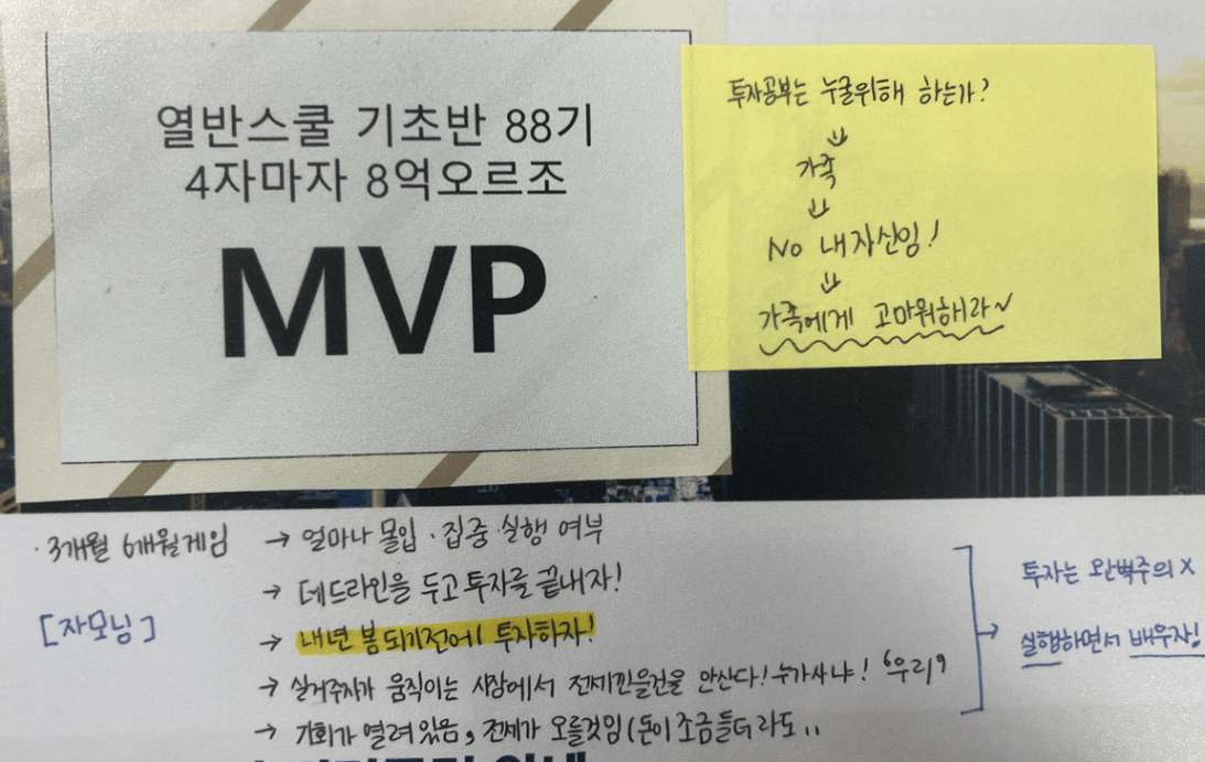 열반스쿨 기초반 강의를 신청하게 된 이유 (초심 찾기) - 저는 재태크 기초반을 수강하면서 다음 스텝으로 열반스쿨을 시작하게되었습니다! - 지금 시장이 좋으니 당장이라도 집을 사고싶다는 마음으로 강의를 수강했습니다! - 가족을 설득하기 위해 내가 먼저 알아야겠다는 마음이 강했습니다!