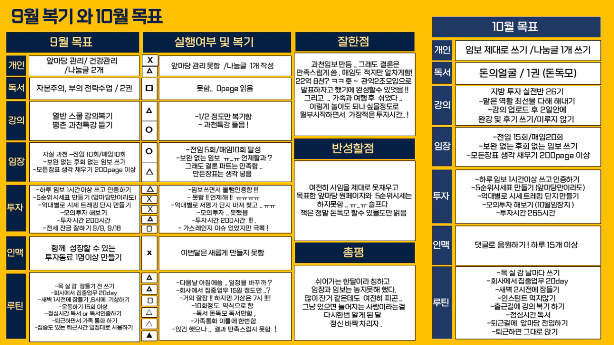 9월 자실했던 복기와 10월 목표 올립니다 !!!!