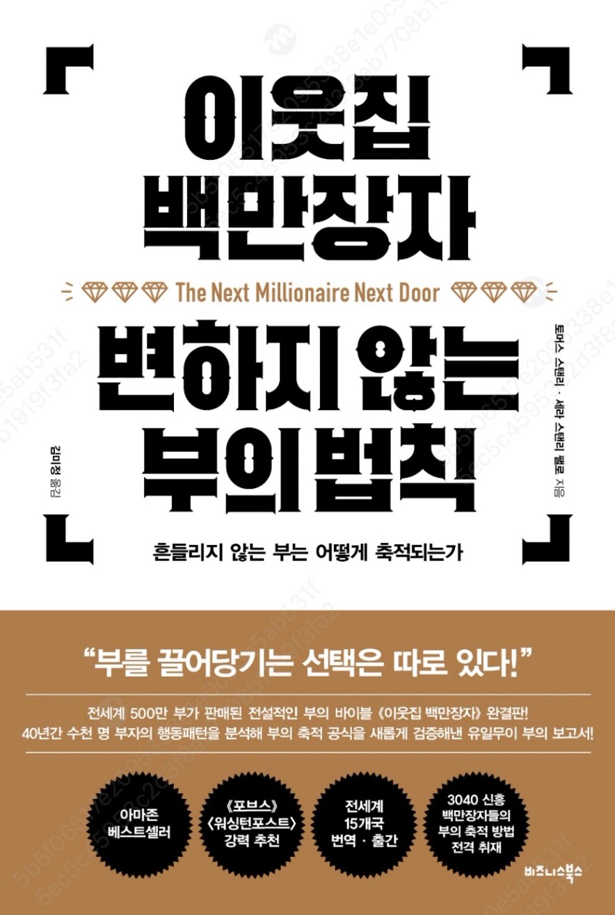 1. 책 제목 : 이웃집 백만장자 변하지 않는 부의 법칙