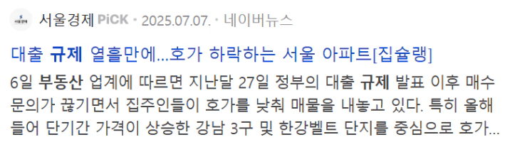 하지만 규제의 목적은 단순히 집값을 떨어뜨리는 게 아니다.
