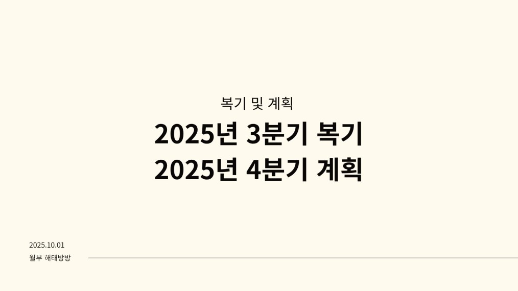 우와 엄청나게 깔끔깔끔 멋진 복기 와 계획입니다! 방방님 4분기도 화이팅이에요!!
