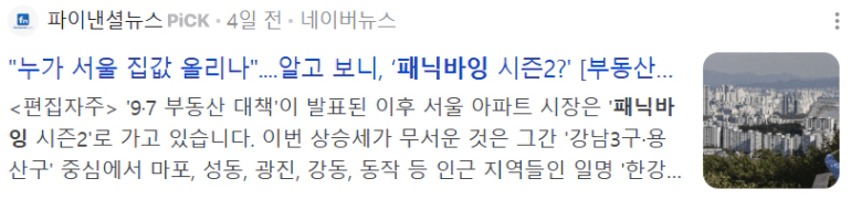 어느정도의 분위기냐면, 패닉바잉이라는 말을 쓸 정도로 최근 부동산 시장은 뜨겁습니다.