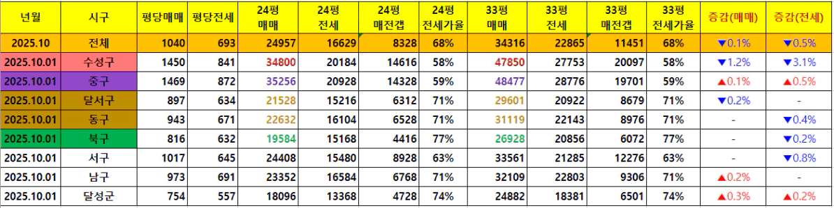 대구는 매매갯수는 9월에 비해 조금 늘어나며