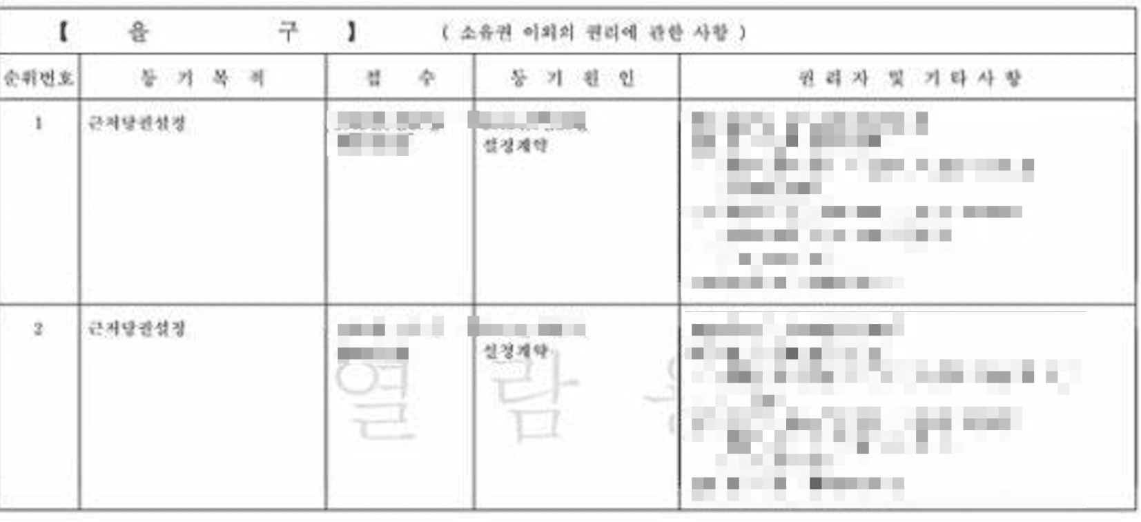 ‘근저당권’은 은행 대출이므로 그 자체로 위험하기보다, 갯수가 너무 많거나 매매가와 비교했을 때 금액이 너무 클 때 위험합니다.