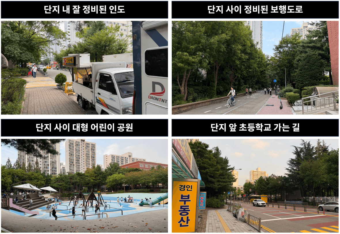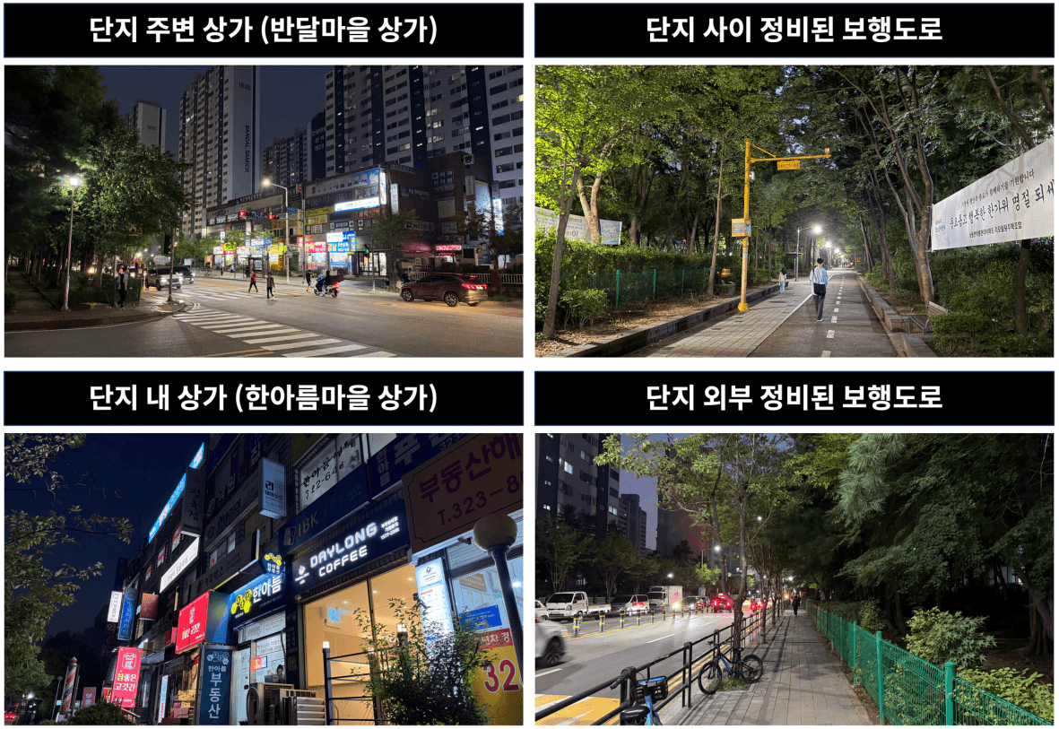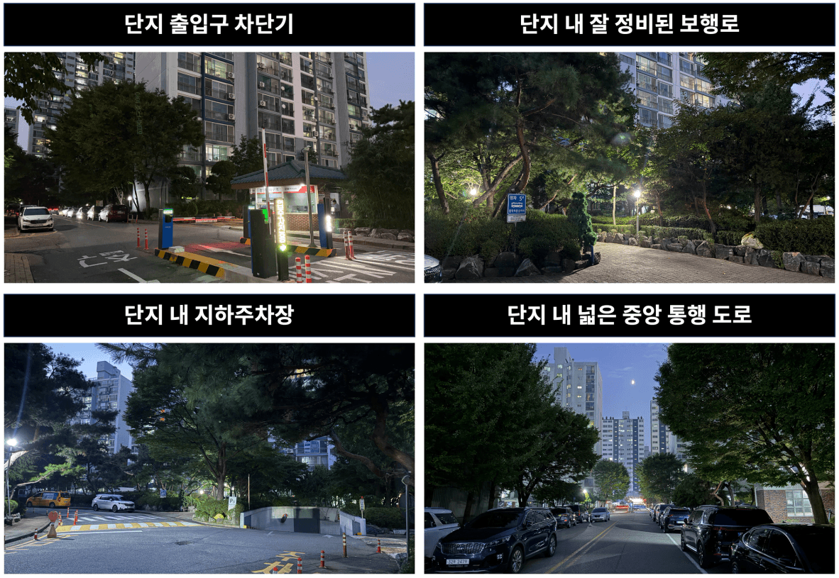 쾌적하게 조성되어 있고, 이 도로를 통해 단지 간