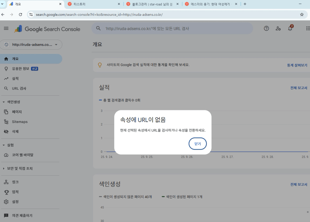 어제까지 색인 생성 요청 하였는데 오늘 갑자기 이런게 되었습니다