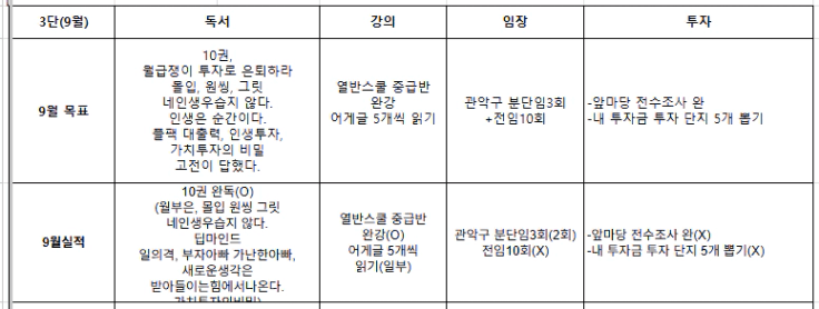 -투자: 시세트래킹과 전수조사. 독서와 임장으로 하지 못했다.