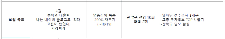 10월엔 너무 욕심내지 말고 100% 보다, 할수 있는 단 하나에 집중하는 한달로 보내보겠습니다.