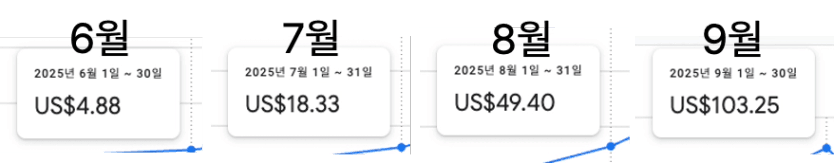 6월에 애드센스를 시작하고, 저의 월별 수익