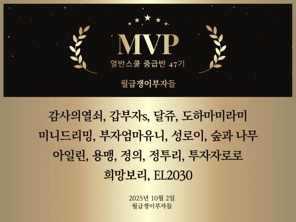 한달간 열심히 노력해온 우리 모두 이번 열중반의 MVP입니다.