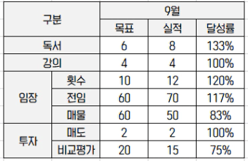 목표: 발임장 15회, 매임 60개 , 전임 60개 / 발임장 , 매임, 전임 달성