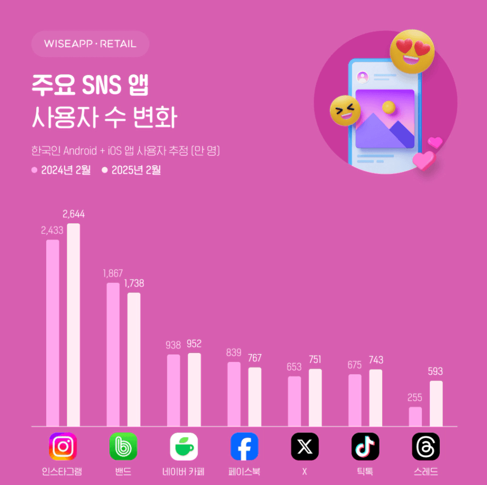 인스타그램과 페이스북 사용자는 굉장히 큰 비중을 차지하고 있습니다.
