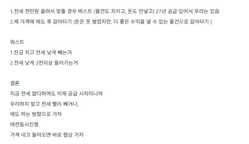2.전세가격에 욕심 내지 않고 빨리 빼는 방향으로 잡기