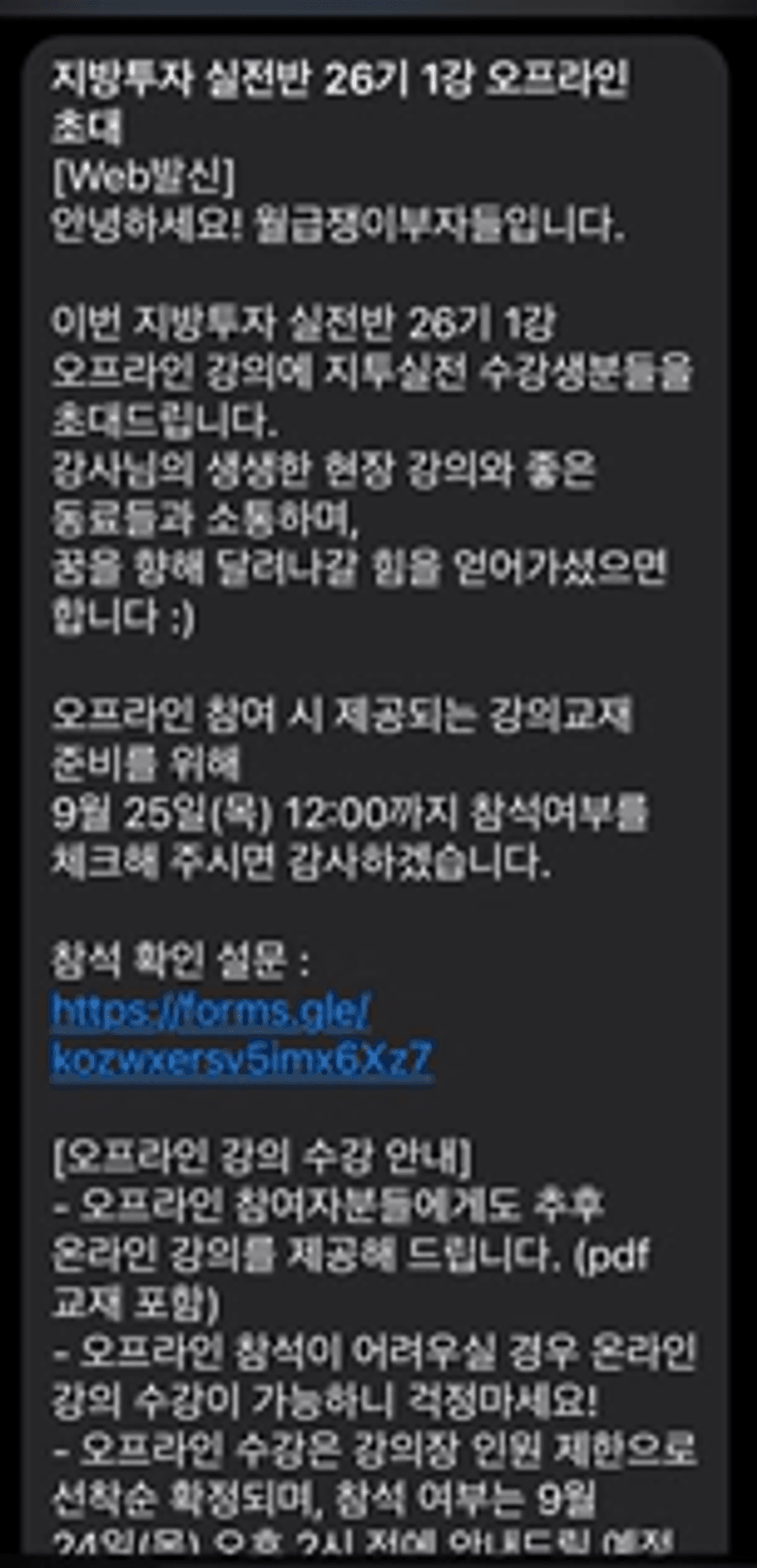 봤는데!! 아니!!!오프 강의 초대 문자