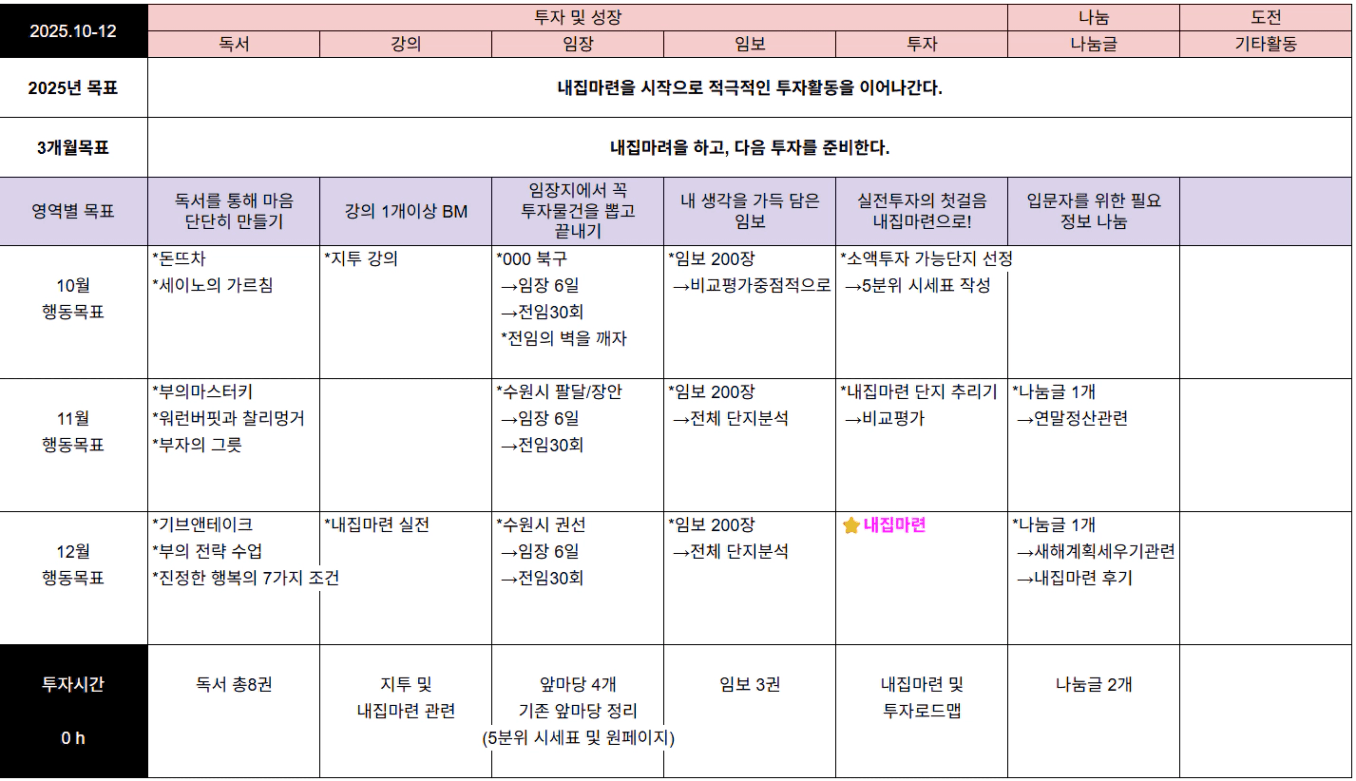 열중강의를 들었는데 자실하면서 강의 듣자라는 마음으로 강의온리로 강의를 신청했더니, 임장및임보는 둘째치고 강의도 계속밀리고ㅜㅜ 그나마 독서는 목표달성. 역시 함께 하는게 좋다는걸 다시 한번 느끼는 한 달 이였다. 잘한점은 지방실전반 광클 도전! 올해 내집마련이 목표라 할까말까 고민 했지만 어짜피 광클은 매번 실패해서 이번에도 연습이다 생각하고 도전 했는데…   성공! ㅋㅋㅋ 광클하길 잘~했다.