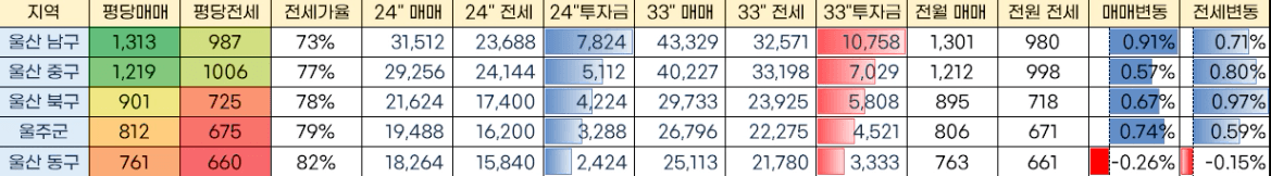 매매 상승폭이 0.2~0.4%로 부산에 비해서 작습니다.