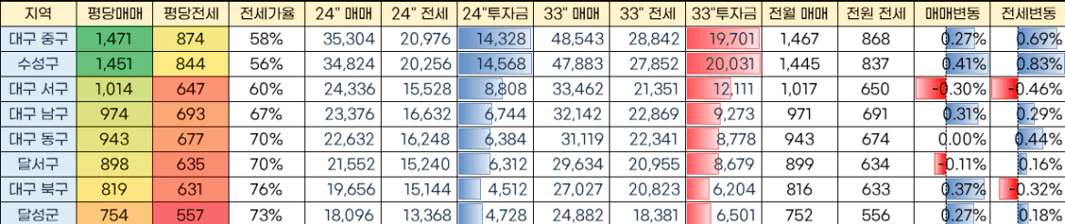 서구, 달서구만 매매, 전세가격이 하락했습니다.