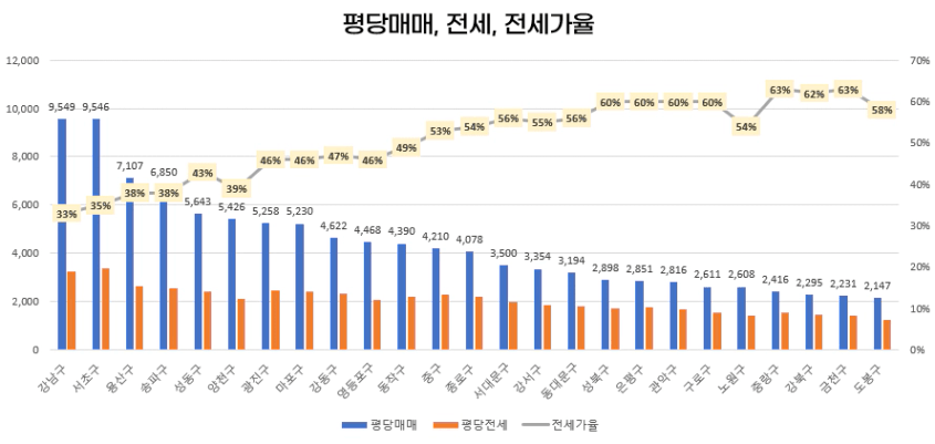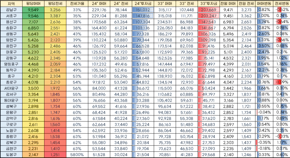 서울에서는 은평, 강북, 금천을 제외한 지역의 매매가 상승했습니다.