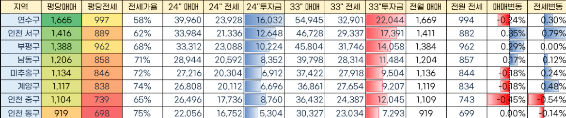 서구, 부평구, 남동구의 매매가격이 상승했지만