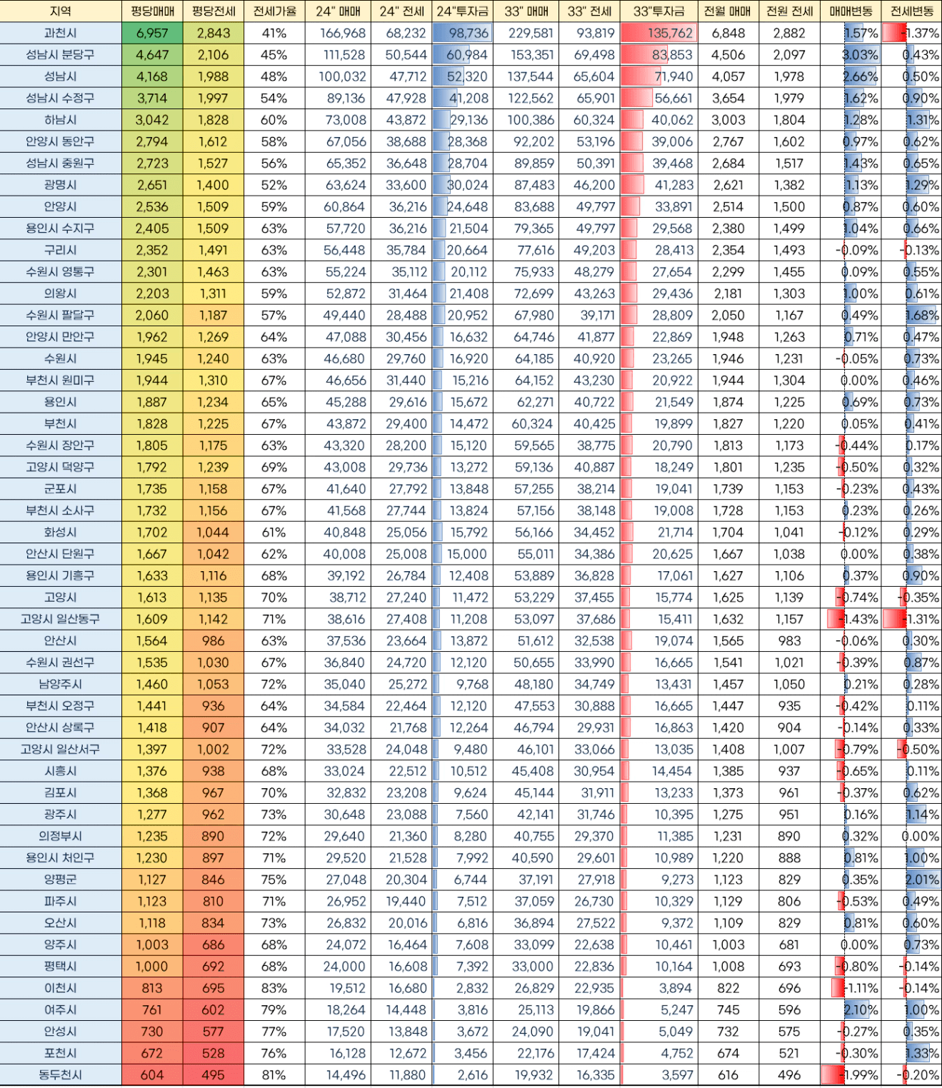 경기는 매매 상승률과 전세 상승률이 같습니다.