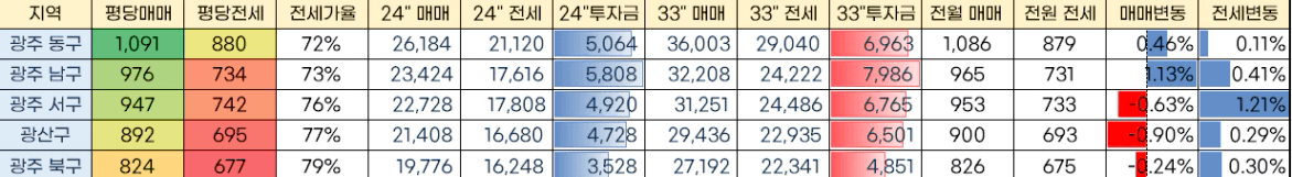 (매매 하락 광주 / 보합 제주, 인천, 충북)