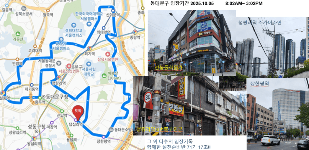 난 임장은 처음이라 어떻게 진행해야 할지 몰랐는데, 조원 중 여러번 경험이 있으신 분이 자처하셔서 분임(분위기임장)루트도 그려주시고, 진행 방식까지 설명해주셨다. 혼자 했으면 막막했을 것을 조원분들이 함께 했기에 레버리지가 가능했던 것이다. 게다가 혼자 동대문구를 돌았다면 다리 아프다는 핑계로 소홀히 할 수도 있었지만, 다른 분들과 함께하니 비오는 7시간을 동대문 산책이 가능했다.