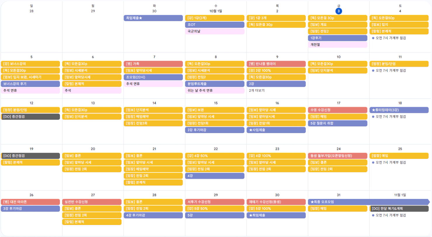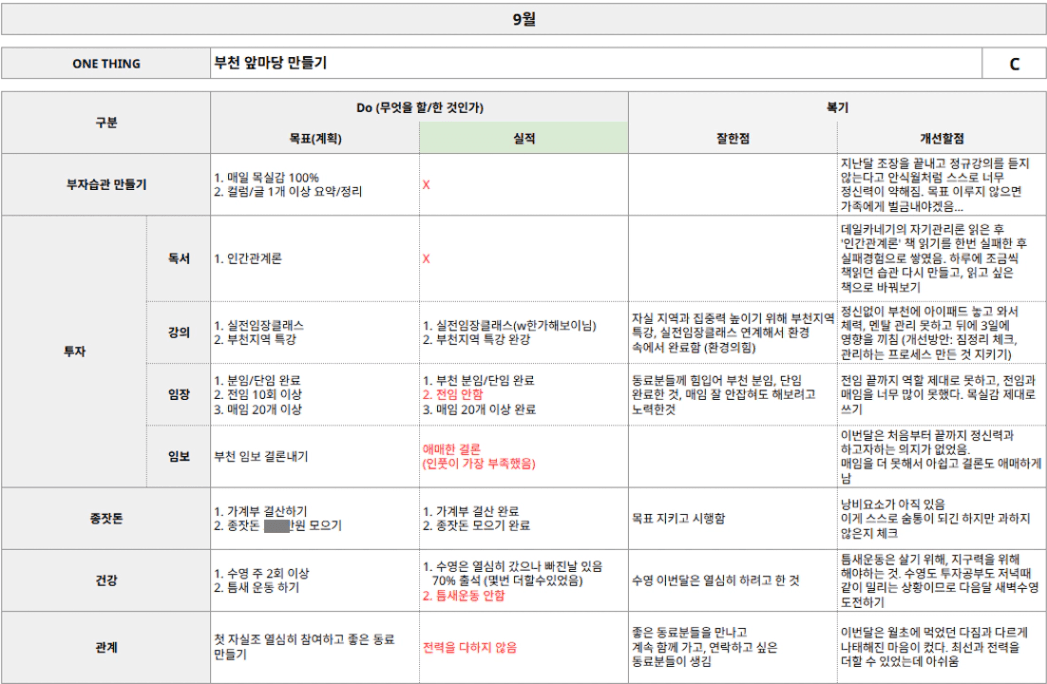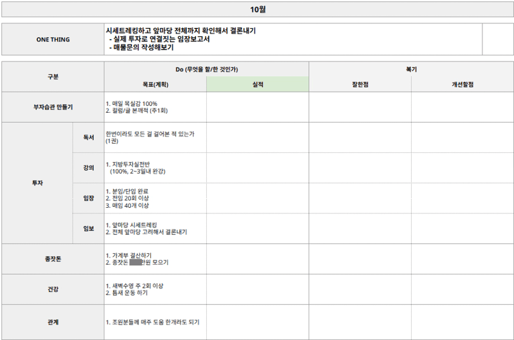 9월에 나태해졌던 점을 반성하며, 텐션 올리고 원씽 이루기