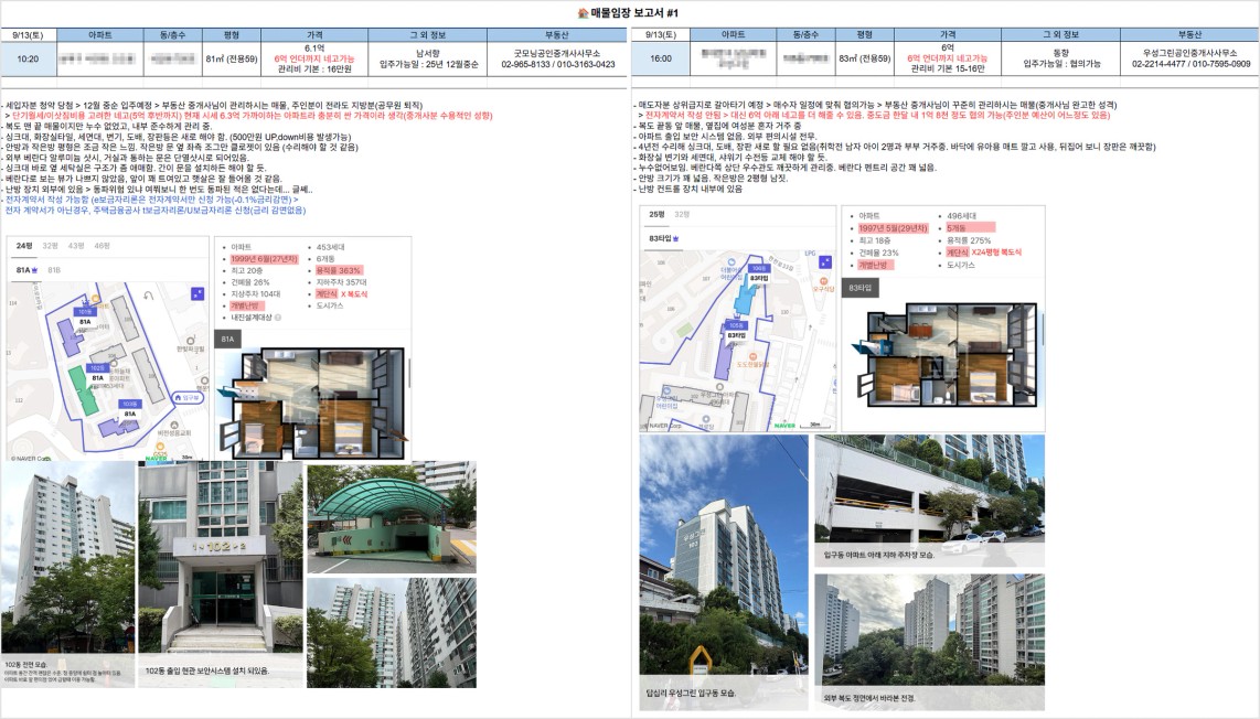 다만 주말에는 내 집 마련 실전반 일정이 있어 시간이 어렵다고 하셔서, 다음 주 중 미팅 후 본격적인 매임을 시작하기로 했습니다. 그 사이 저는 개인적으로 관심을 두고 있던 동대문구 아파트 두 곳을 주말 동안 직접 매임 하며 발품을 이어갔습니다.