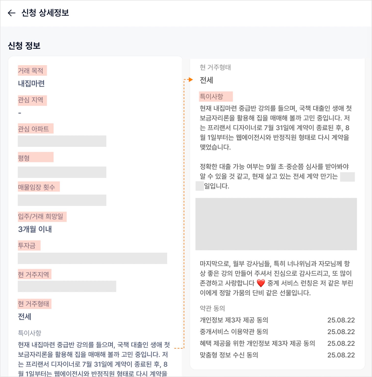 ‘구해줘 내 집’ 베타 서비스가 막 오픈 한 지 며칠 되지 않아 우선 중급반 강의를 듣는 분들 중 희망자를 모집하고 있었는데, 관심 지역(구), 시세 리스트 중 선택한 최선의 단지, 원하는 평형, 임장 경험 횟수, 입주 및 거래 희망일, 투자금, 현재 거주 지역 등 아주 세세한 사항들을 기재해야 했습니다.