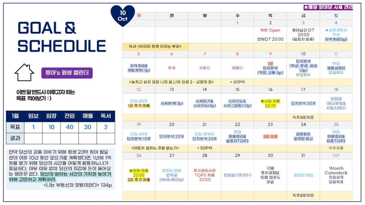 10월 계획을 세워 보았습니다.