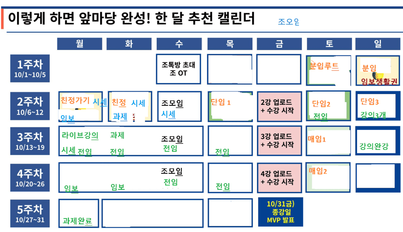 → 10월을 준비 된 상태로 만든다. 강의에서 알려주신 그대로 행동해본다