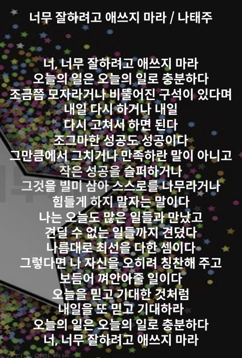그리고 주저 앉고 싶은 순간들이 찾아오면, 자모님이 써주신 손편지와 글귀를 다시 보고 일어서겠습니다.