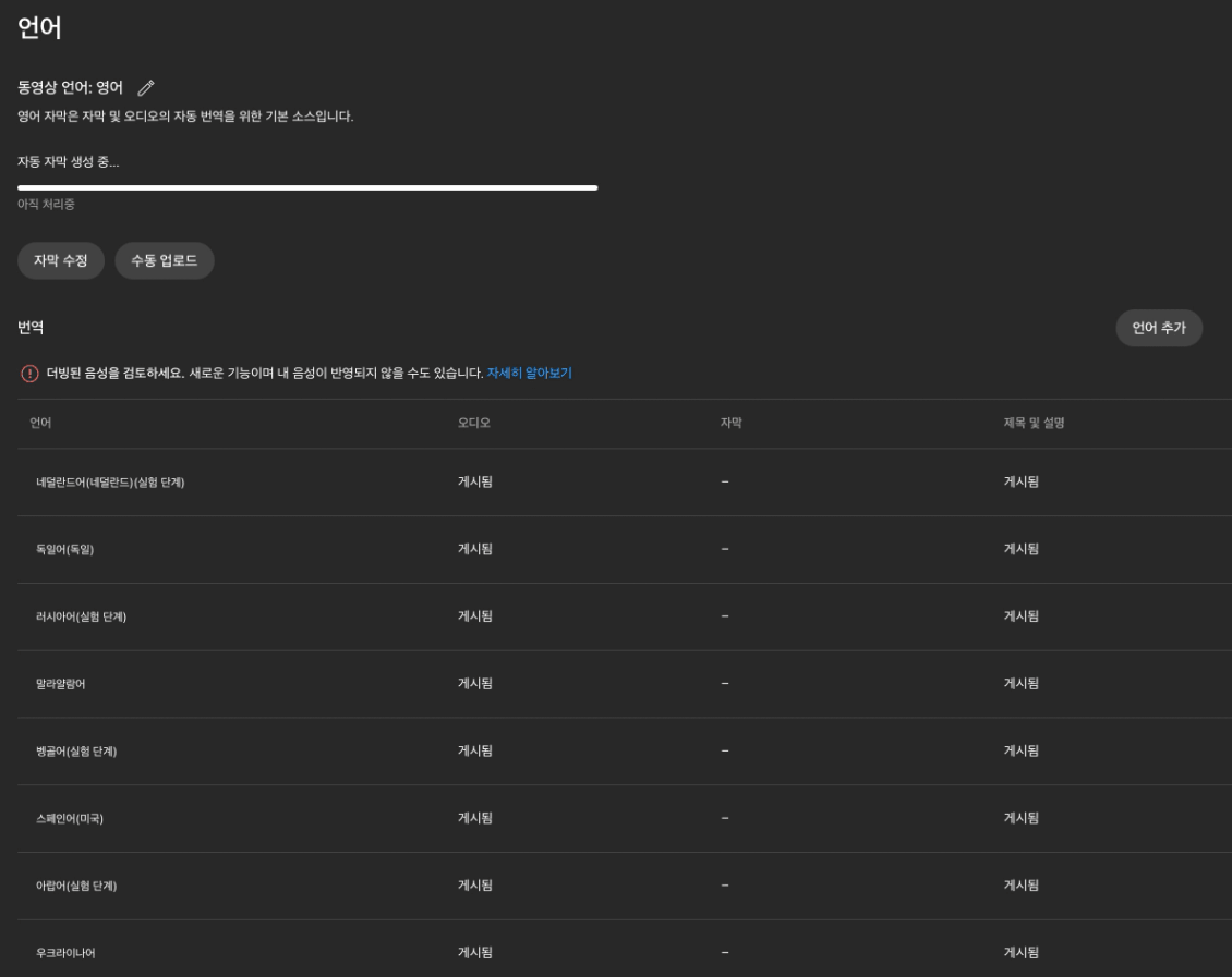 [4] 자동 더빙 - 22개 국가 언어로 내 영상이 번역됩니다