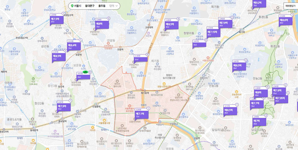 나는 성동구 2호선 초역세권에 살고싶었는데 여긴 안되겠네, 그럼 시선을 좀더 넓혀 보면 되죠!