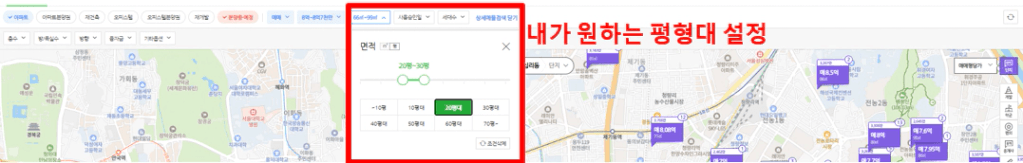 가족이 있어 적어도 20평에 살아야하는 상황, 20평대로 러프하게 필터를 걸었어요