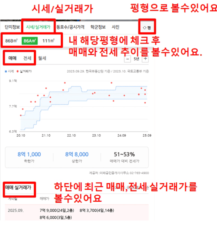 단지를 클릭하면 단지정보와 시세/실거래가를 확인하며 단지 정보를 채워넣을수 있어요