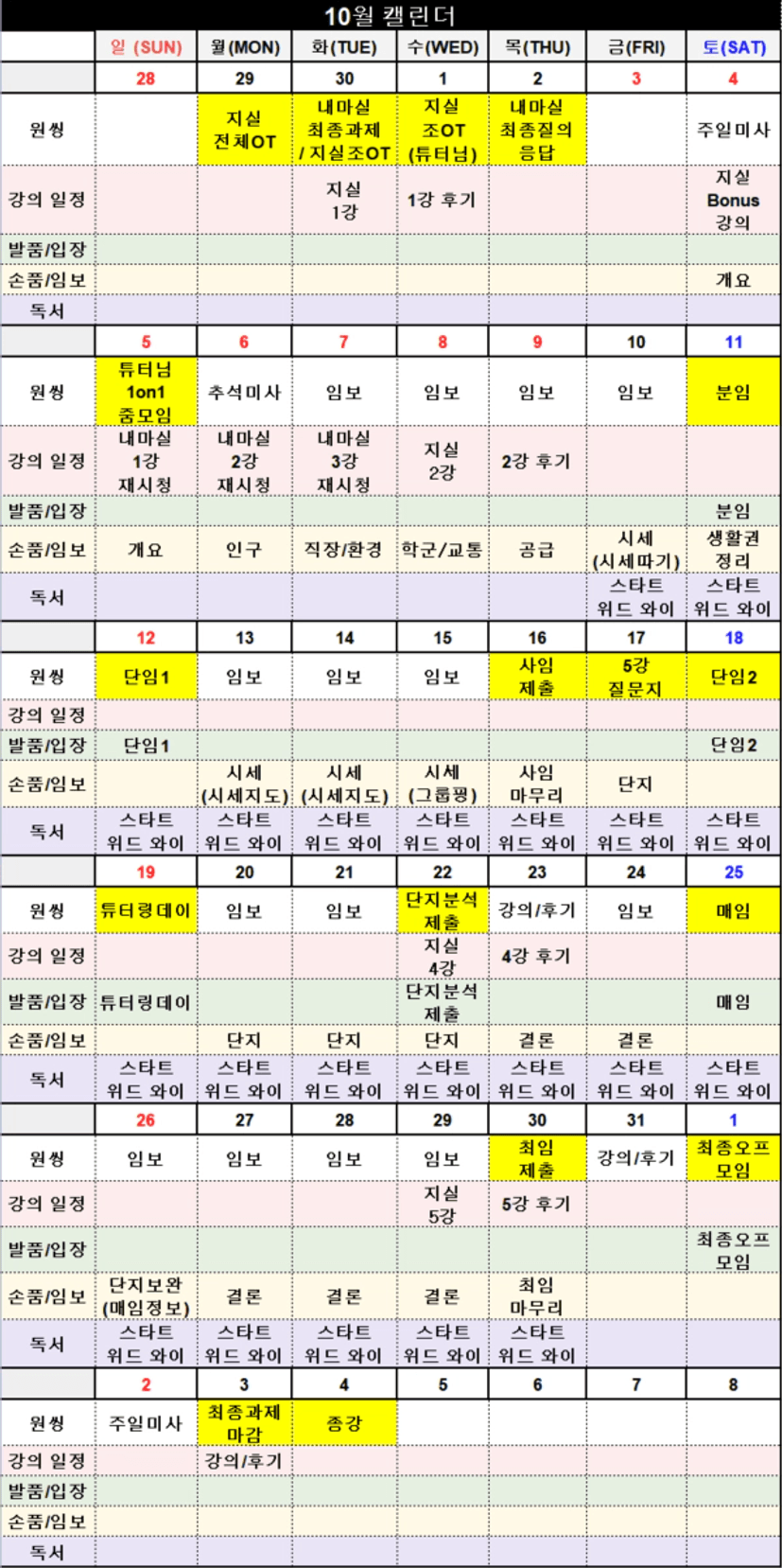 목표 : '지방투자 실전반' 권장수강일정에 맞춰 충실하게!
