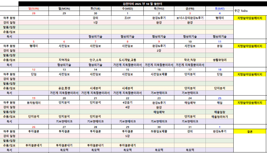 - 주말을 최대한 이용해서 임장하기(10회 목표)