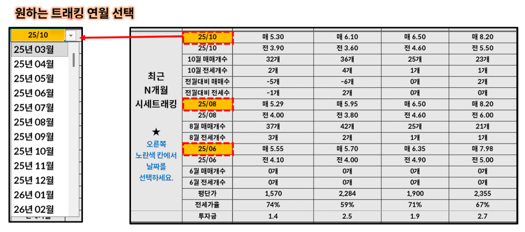 직전 달과, 2개월 전 아실 실거래가를 입력하시면