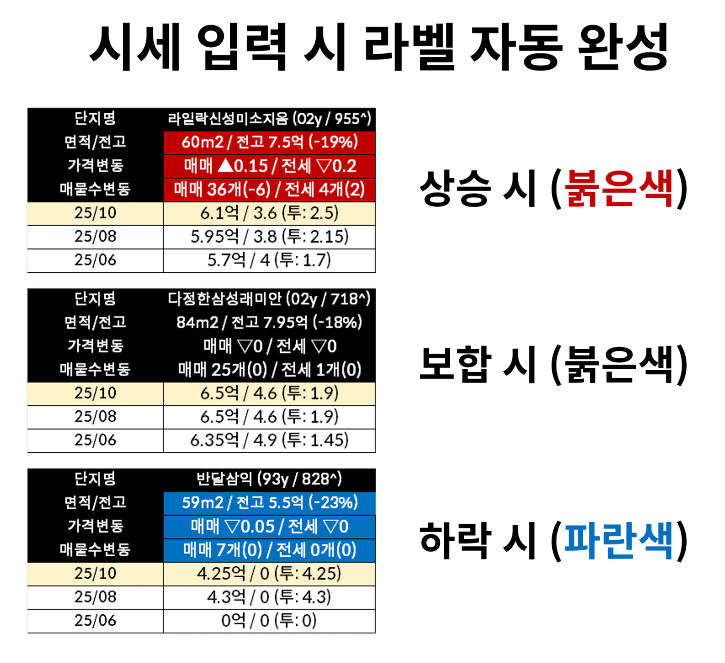 ※ 시세 트래킹 시 자동으로 완성되는 라벨 모습