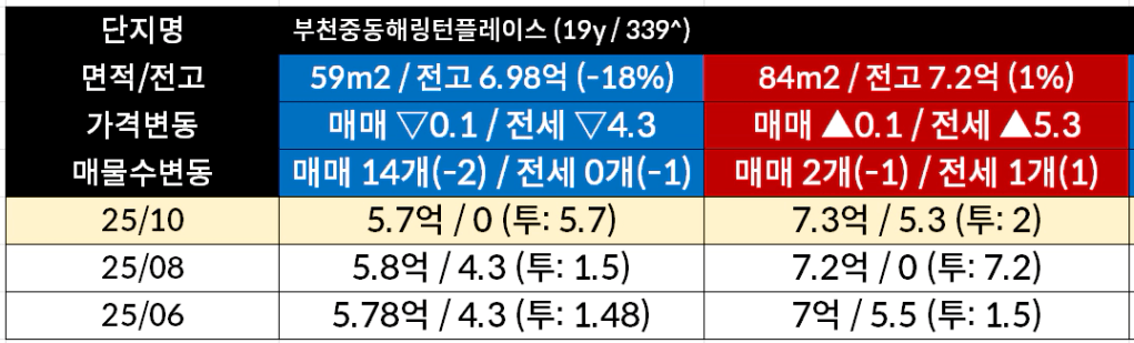 (연식, 세대수, 단지명, 평형, 구조 등등)