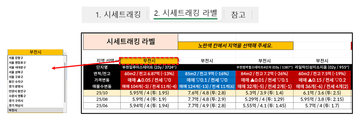 날짜를 선택하셨다면 이제 [시세트래킹 라벨] 시트에서