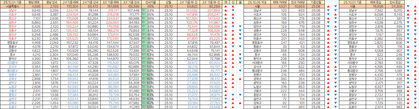서울 매매가와 전세가는