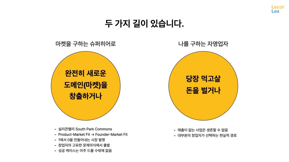 이제 창업가가 선택할 수 있는 길은 두 가지입니다.