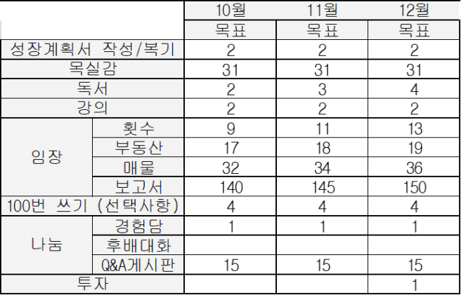 - 적용해야지 하고 하지 못함 임보 임장 내역 목표 세워서 적용 하기