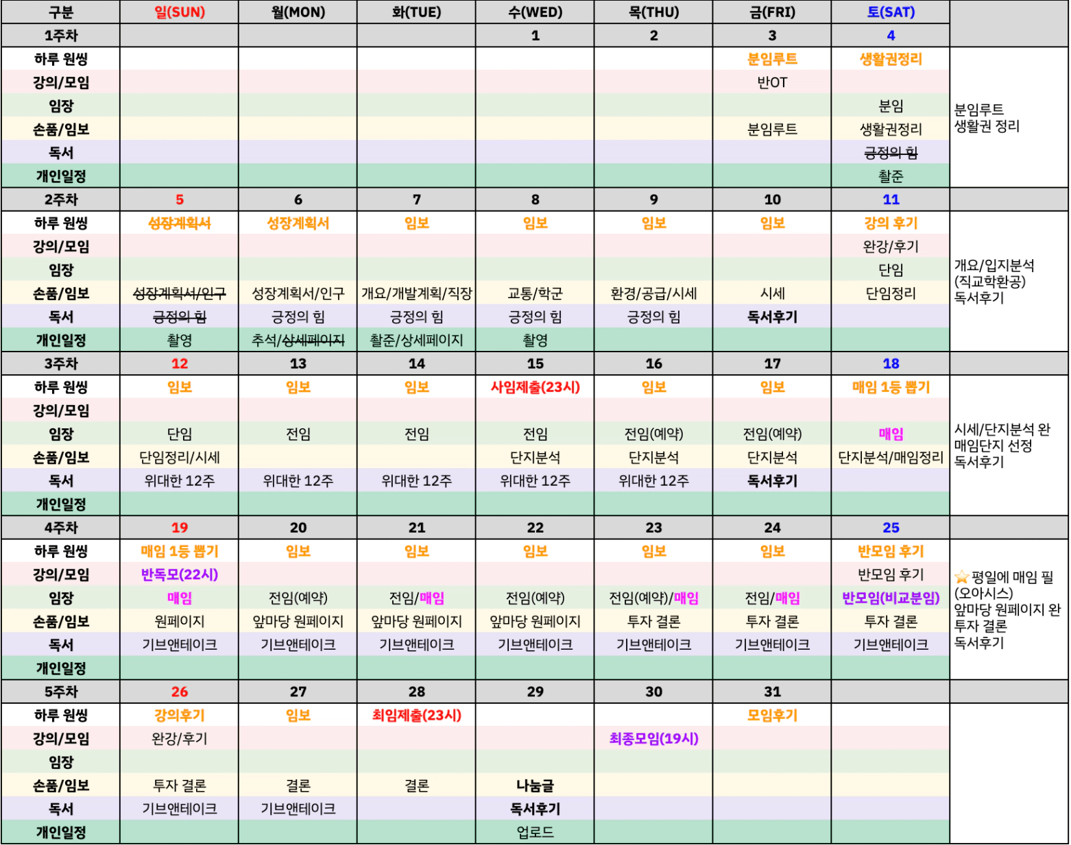 [월부학교 가을학기 재ㅇ12ㅣ 튜터님과 전력투구⚾ 바결] 10월 계획