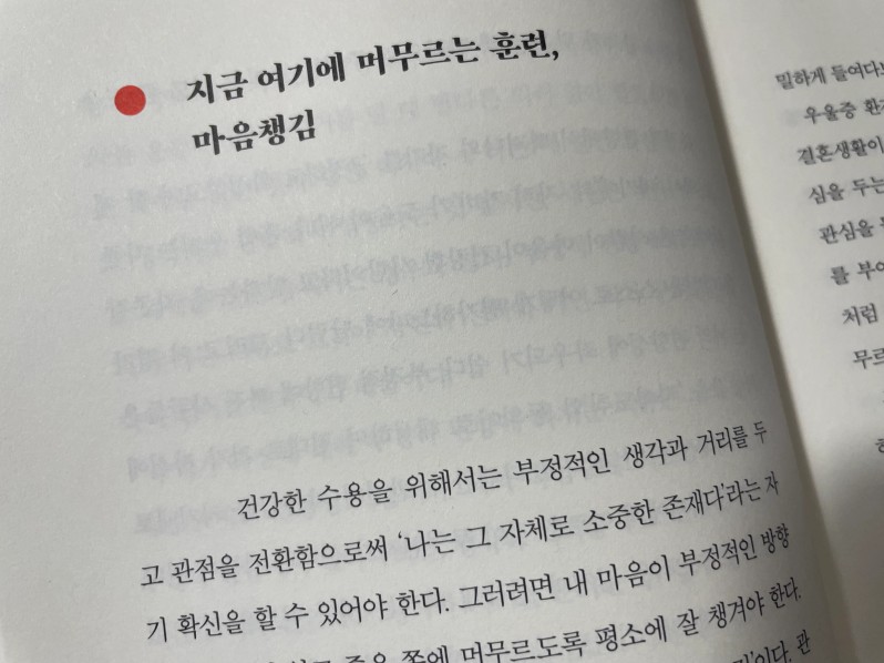 내 마음이 부정적인 방향으로 흐르지 않고 좋은 쪽에 머무르도록 평소에 잘 챙겨야한다. <진정한 행복의 7가지 조건>