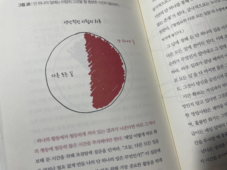 하나의 활동에서 월등하게 의미 있는 결과가 나온다면 바로 그 하나의 행동에 월등히 많은 시간을 투자해야만 한다. <원씽>
