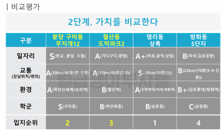 교통은 살짝 밀리지만 환경과 학군이 우세한 분당이 2위라고 생각하신건지?