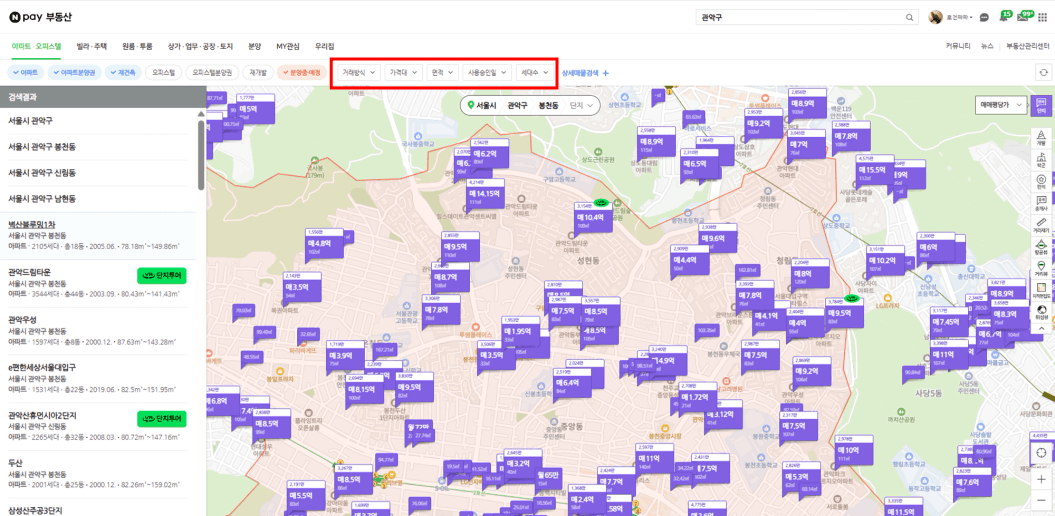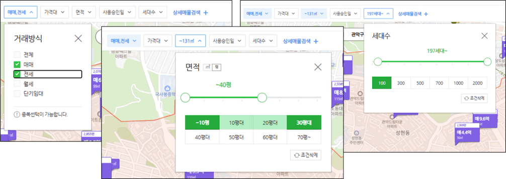 그 조건에 알맞는 단지들만 나오게 됩니다.